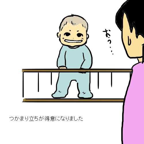 まっすぐ立つようになりました。つかまるところがないとおかしな中腰になってます。 ちょっと目を離すと経とうとして転ぶので怖いです。 おもちゃを奪われると奪った人をにらむようになりました。 うれしい時に手をパタパタしたり、いらだった時に床をたたい…